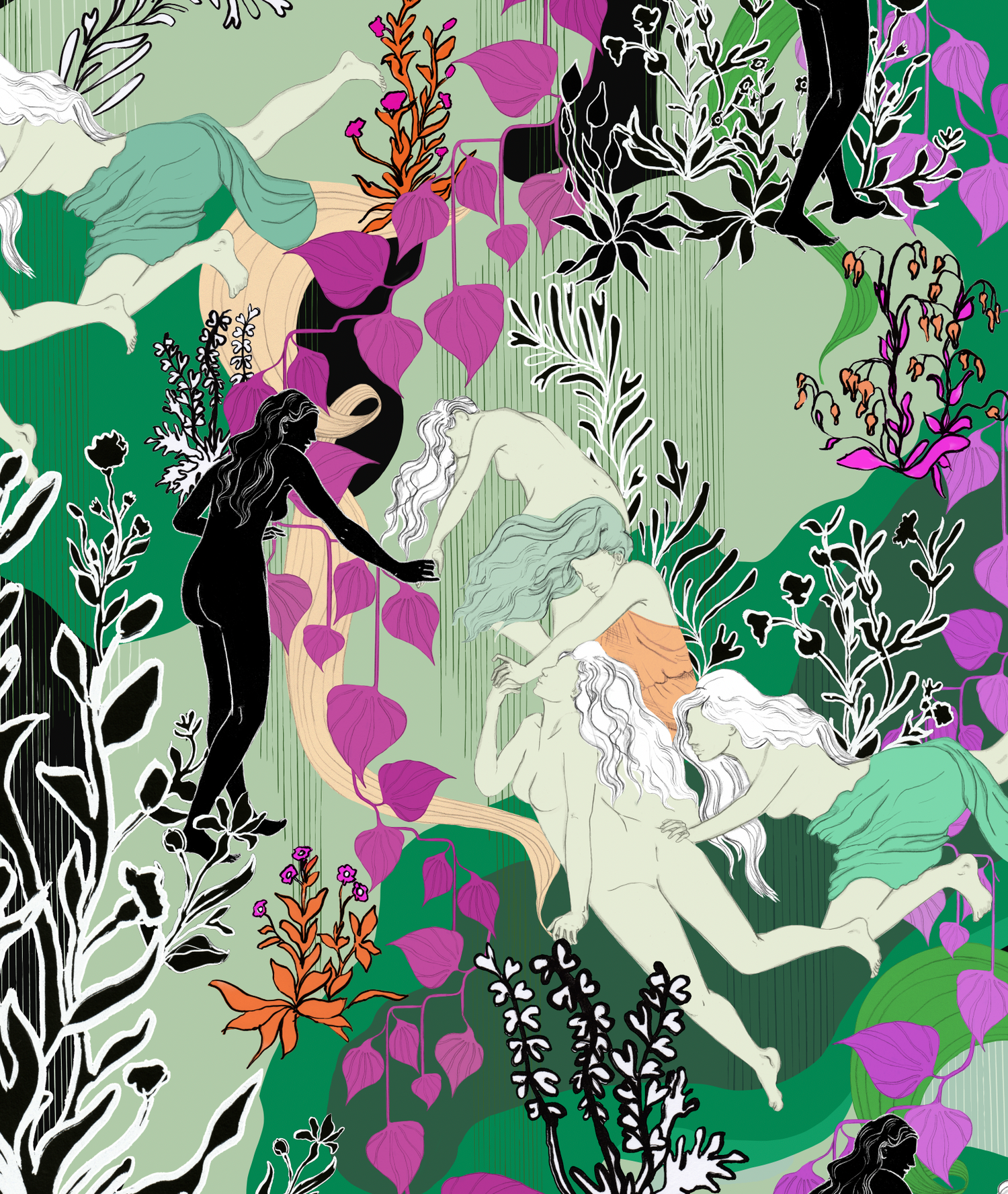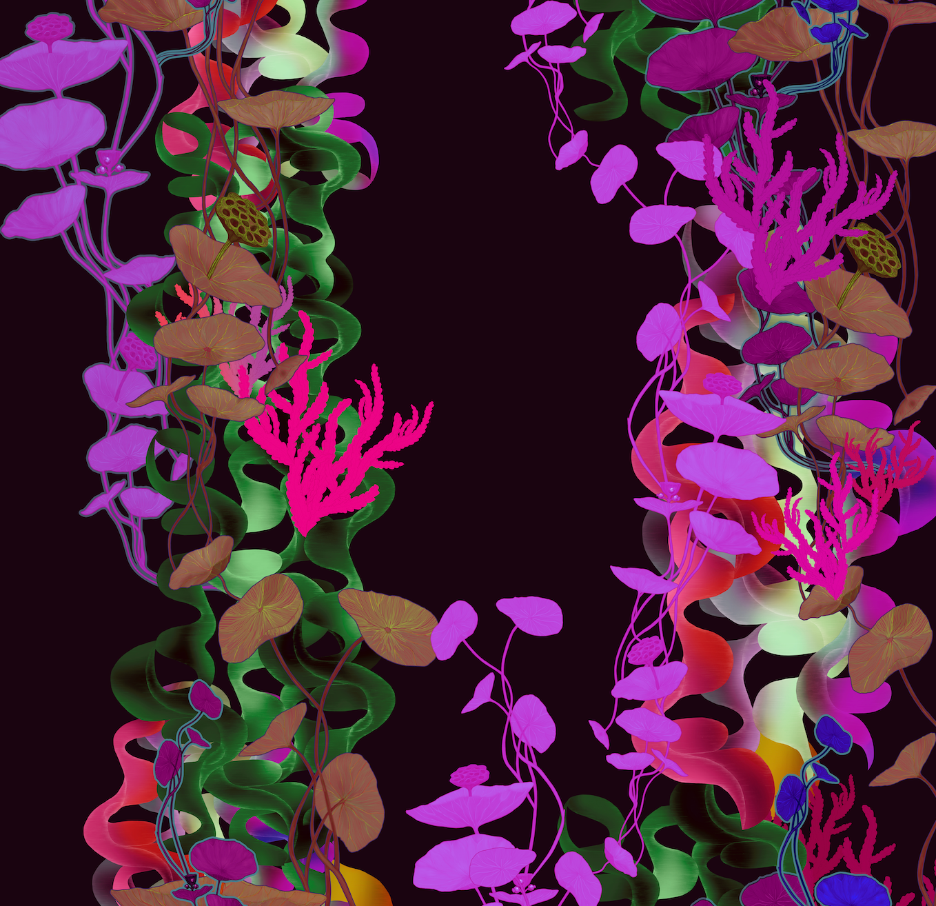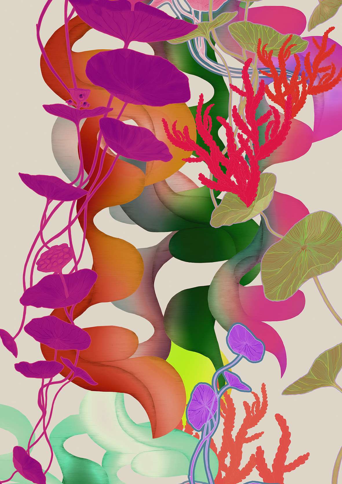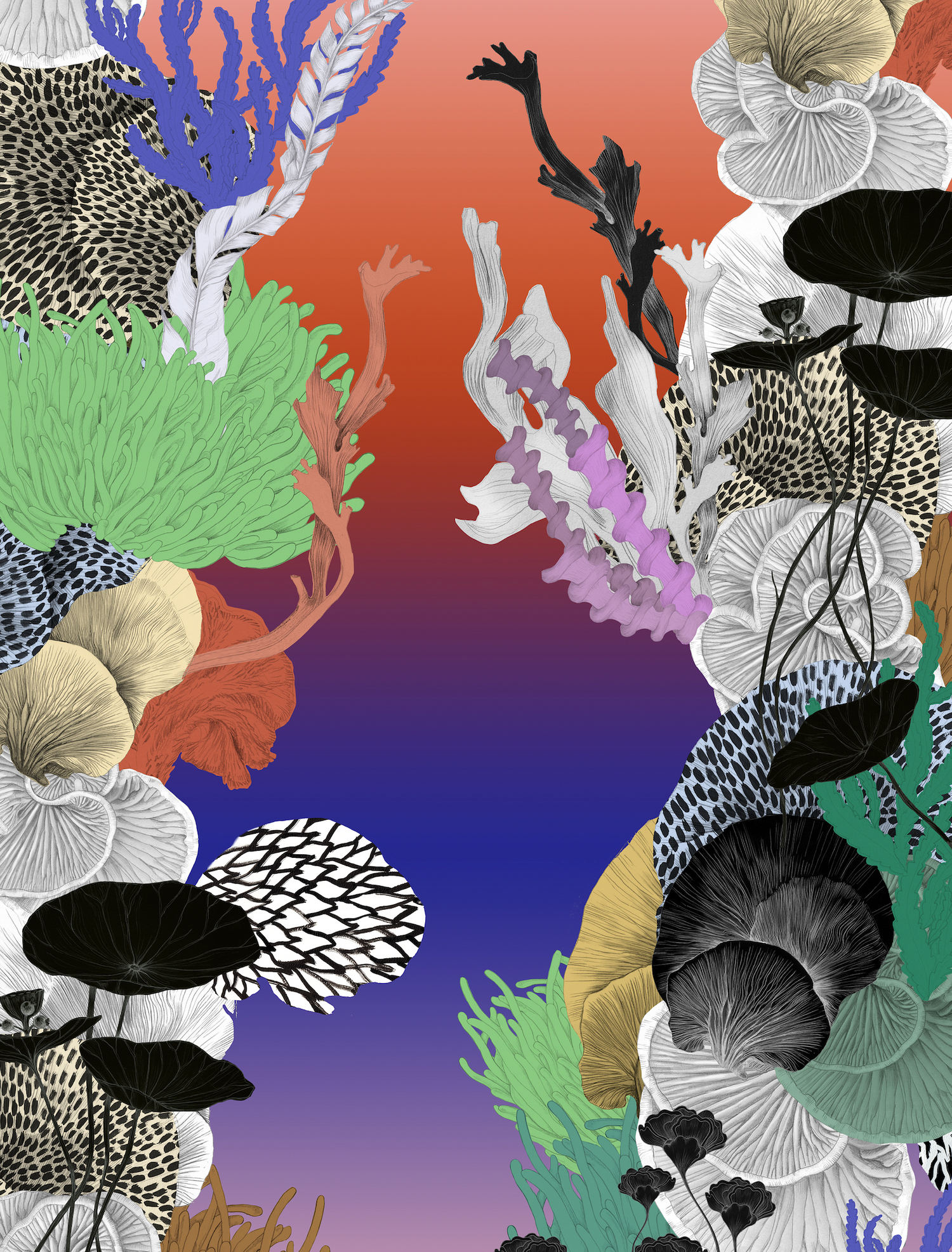 The pioneers of the forest and the reefs are the ones that are feeding organisms and letting them flourish. This print is celebrating both worlds together. To respect an nurture, as this world is changing.