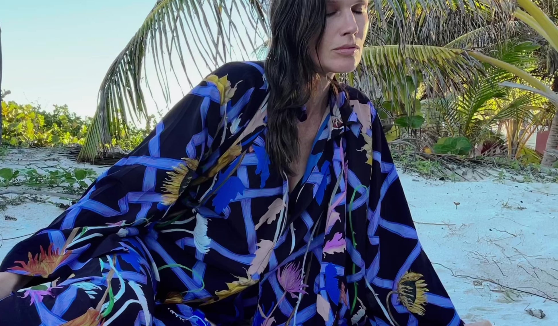 The oversized silhouette robe can be worn like a kimono, closed or open with the large belt / tie. It can also be worn as a wrap dress.