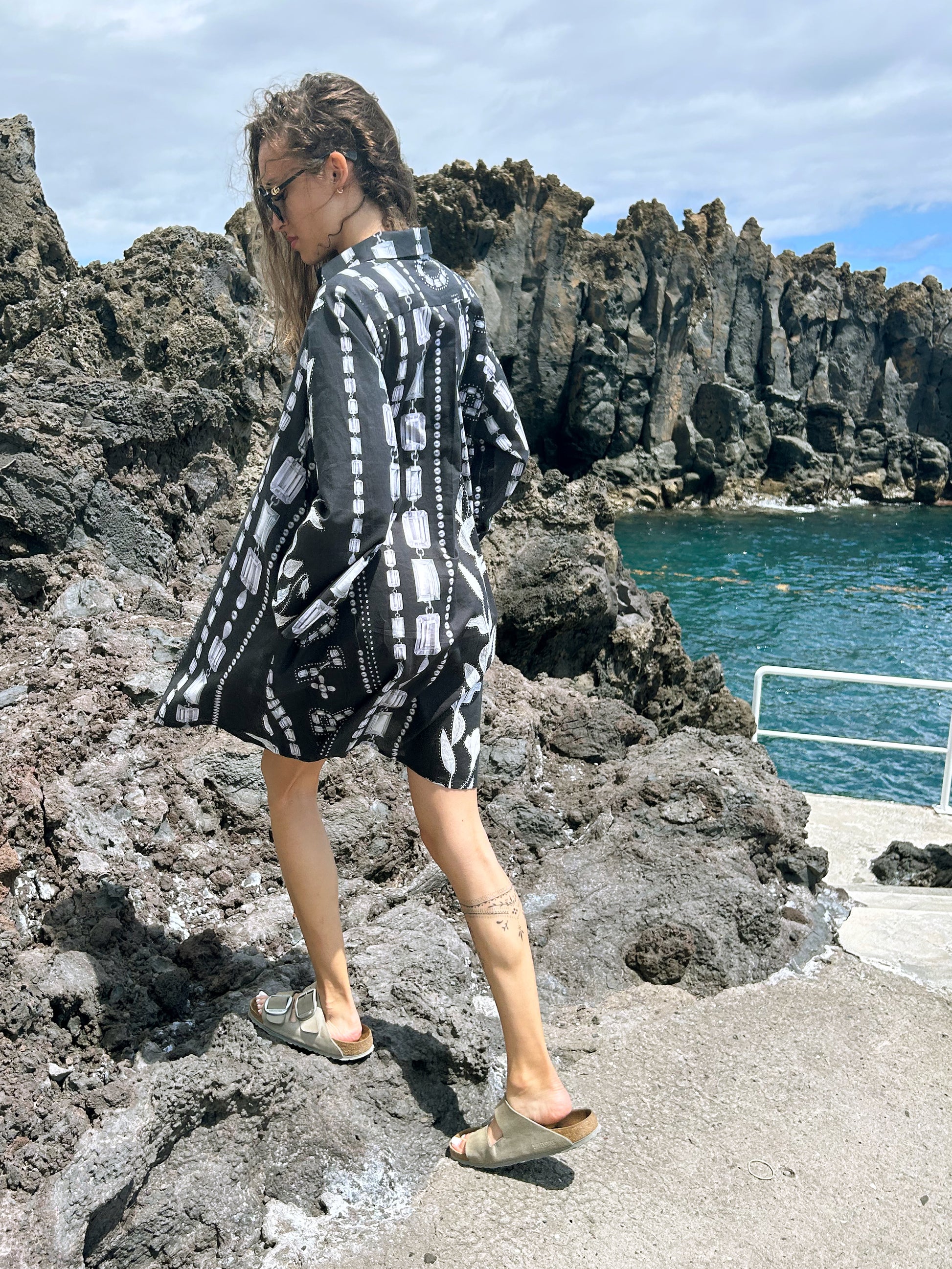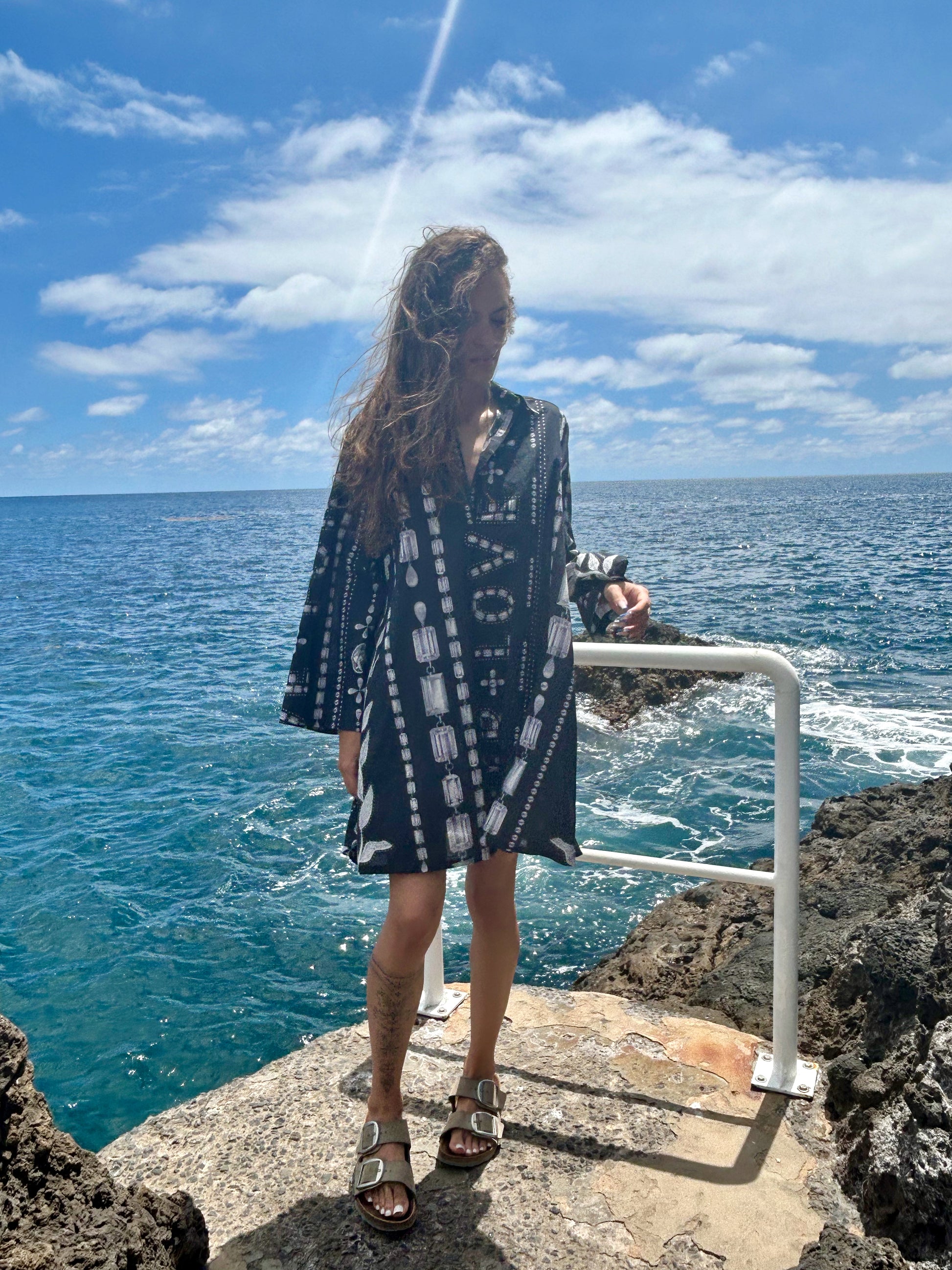 The dress can easily be worn as a tunic with pants or as a coverup.