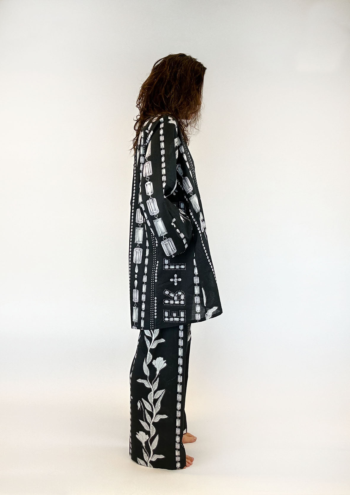 Inspired by the Mexican charro outfit. where the vertical lines from the print play a large role.